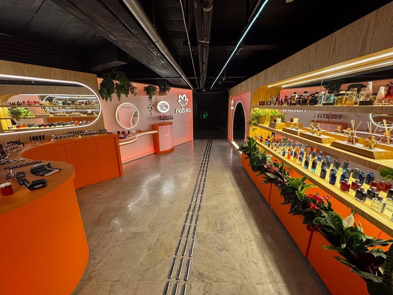 Com luzes, cores, texturas e espelhos, o público poderá vivenciar uma experiência de marca imersiva por meio de experimentação de maquiagem com as linhas Natura Una e Faces, além de um espaço sensorial de perfumaria que traz os lançamentos exclusivos da marca.