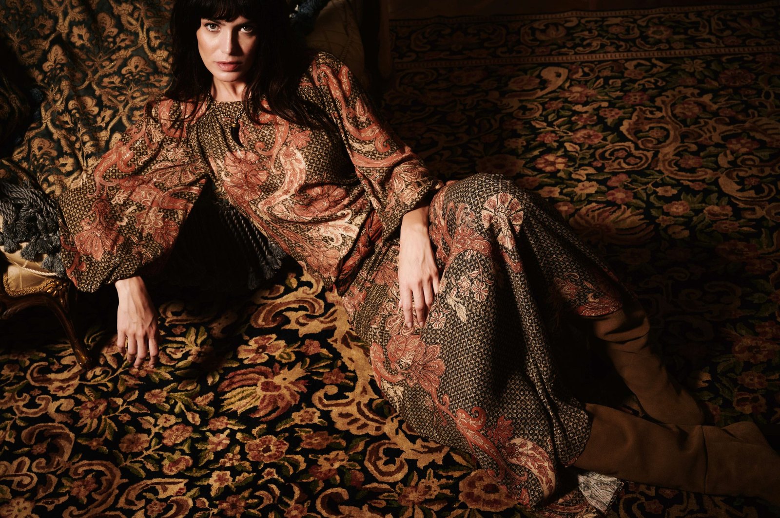 As sobreposições são a grande aposta da coleção, combinando blusas de gola a terceiras peças leves como o cashmere. Nos acessórios, cintos de couro com lenços transpassados, pulseiras de serpente e brincos de moedas imprimem personalidade e textura boho aos looks.